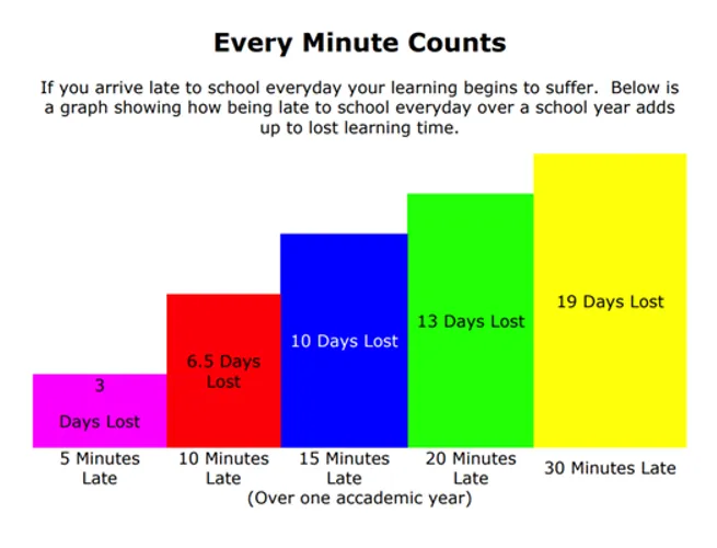 Being late to school has a significant impact on the amount of learning time lost over a school year.